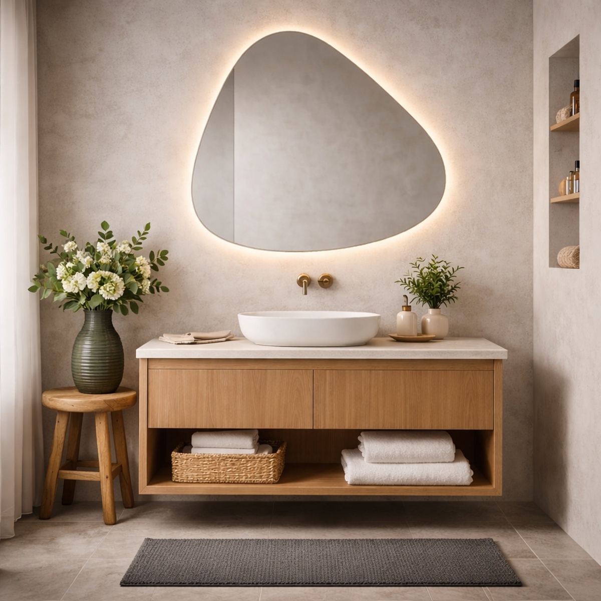 Je past een avocado spiegel eenvoudig toe in verschillende ruimtes. In de badkamer zorgt hij voor functioneel licht en een moderne uitstraling. In een toiletruimte of slaapkamer werkt hij juist als uniek designobject dat de ruimte een eigen identiteit geeft.