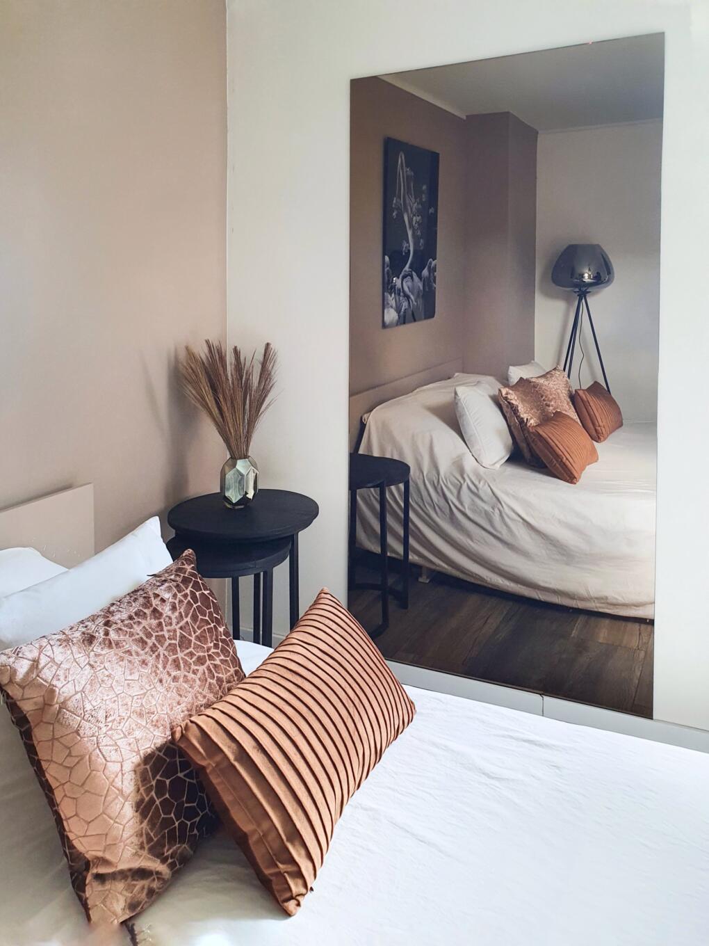 Heb je een muur met scheurtjes, afbladderende verf of verkleurd stucwerk? Dan is een brede spiegel een makkelijke en betaalbare manier om dergelijke imperfecties te verbergen, al is het maar als tijdelijke oplossing. Wat je niet ziet, dat is er niet.