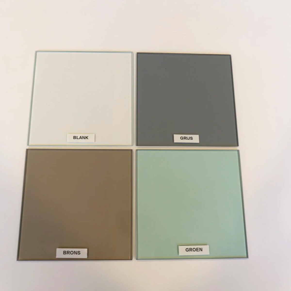 Let op: Voor locaties waar veiligheid is vereist, wordt het aangeraden om te kiezen voor gehard gekleurd glas.