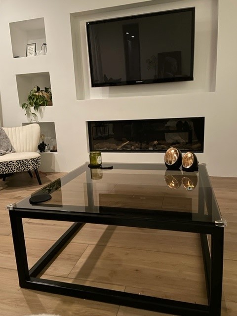 let op; het frame waarop de het glazen salontafel blad ligt, zoals op de foto wordt afgebeeld, leveren wij niet. Dit is alleen ter inspiratie.