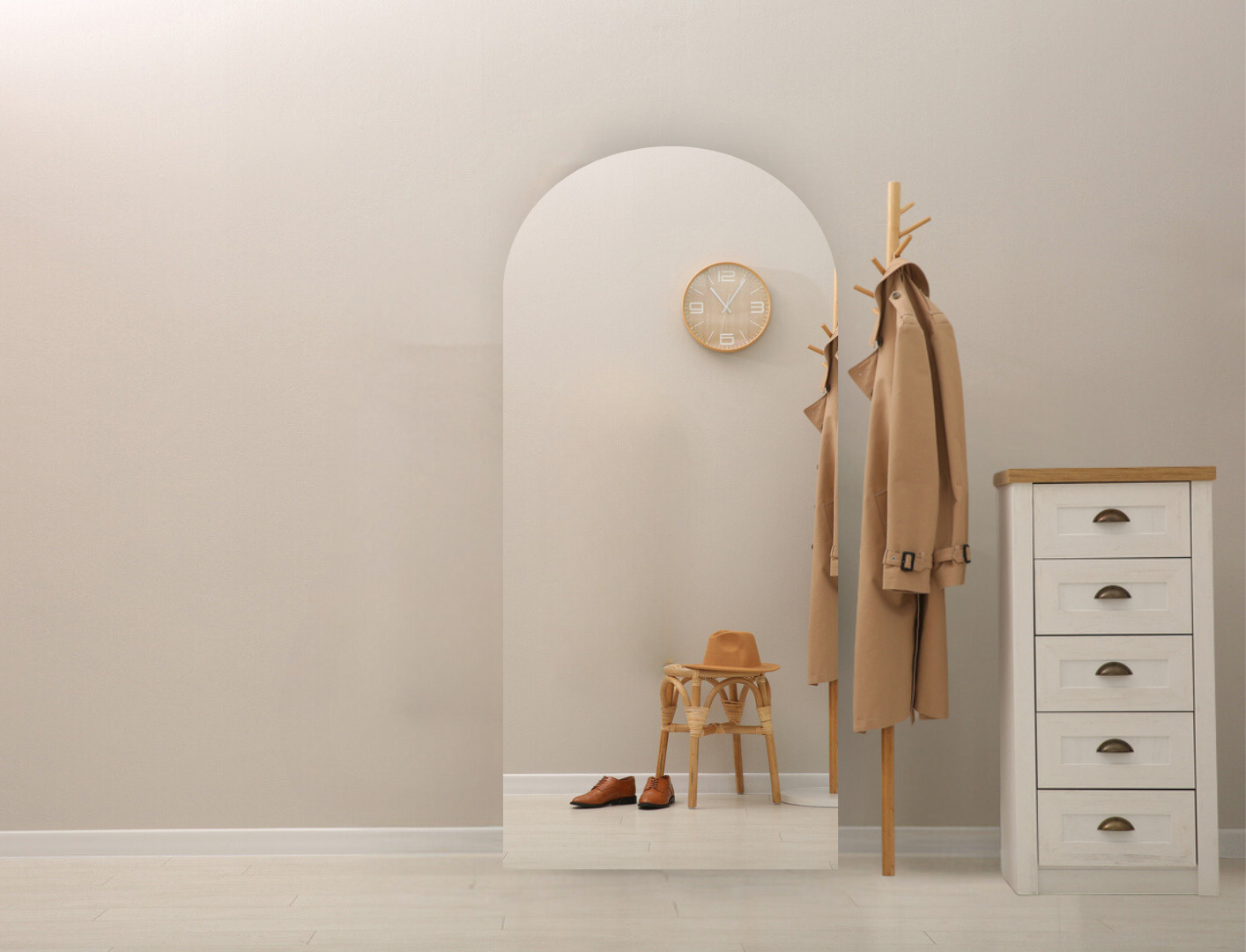 Naast het praktische aspect zorgt een halspiegel ook voor een gevoel van warm welkom. Niet alleen voor jezelf als je thuiskomt, maar zeker als je bezoek krijgt. Of als het gaat om de hal/gang in een bedrijfspand, als je klanten of zakenrelaties ontvangt. Doordat een spiegel licht reflecteert en diepte toevoegt, voelt deze ruimte minder benauwd aan en creëer je heel eenvoudig een uitnodigende sfeer. Of je nu kiest voor een grote spiegel die de hele wand beslaat of een kleinere spiegel, het is een meerwaarde voor elke hal.