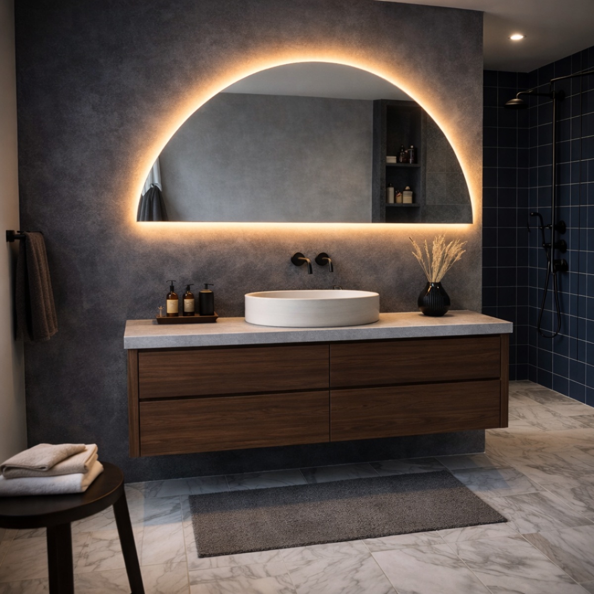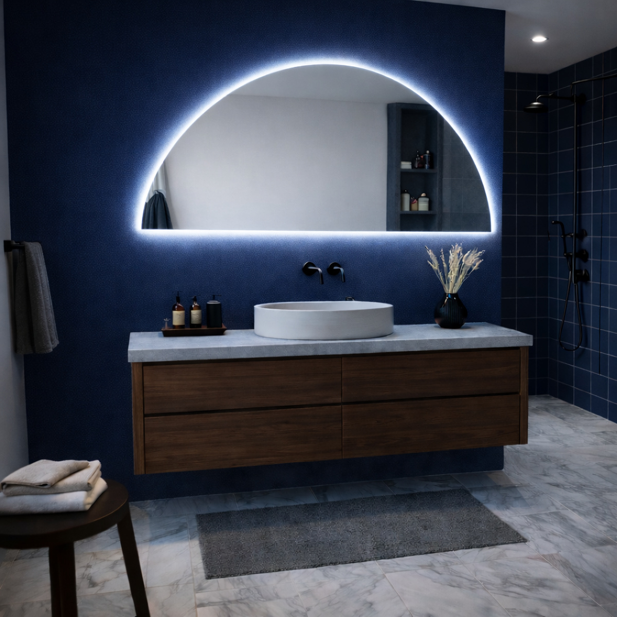 Een halfronde spiegel met led-verlichting biedt verschillende functionele en visuele voordelen. De unieke vorm zorgt direct voor een modern en onderscheidend karakter. Dit maakt de spiegel ideaal voor wie net iets anders wil dan standaard vormen.