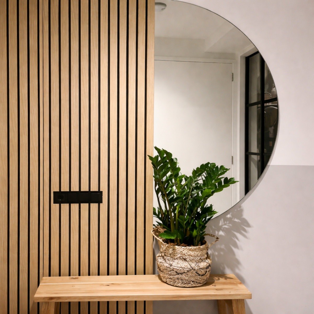 In de lobby of ontvangsthal van een kantoor of hotel is een spiegel die halfrond is een opvallend item dat meteen de aandacht trekt. De halvemaanvorm oogt vriendelijk en uitnodigend, wat direct bijdraagt aan een positieve eerste indruk op klanten of bezoekers. Bovendien helpt de spiegel om het natuurlijke licht beter door de ruimte te verspreiden, waardoor de ruimte lichter en toegankelijker aanvoelt.