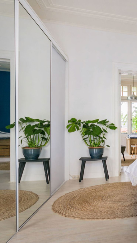 Bekijk in de video hieronder hoe een spiegel een kastenwand transformeert.