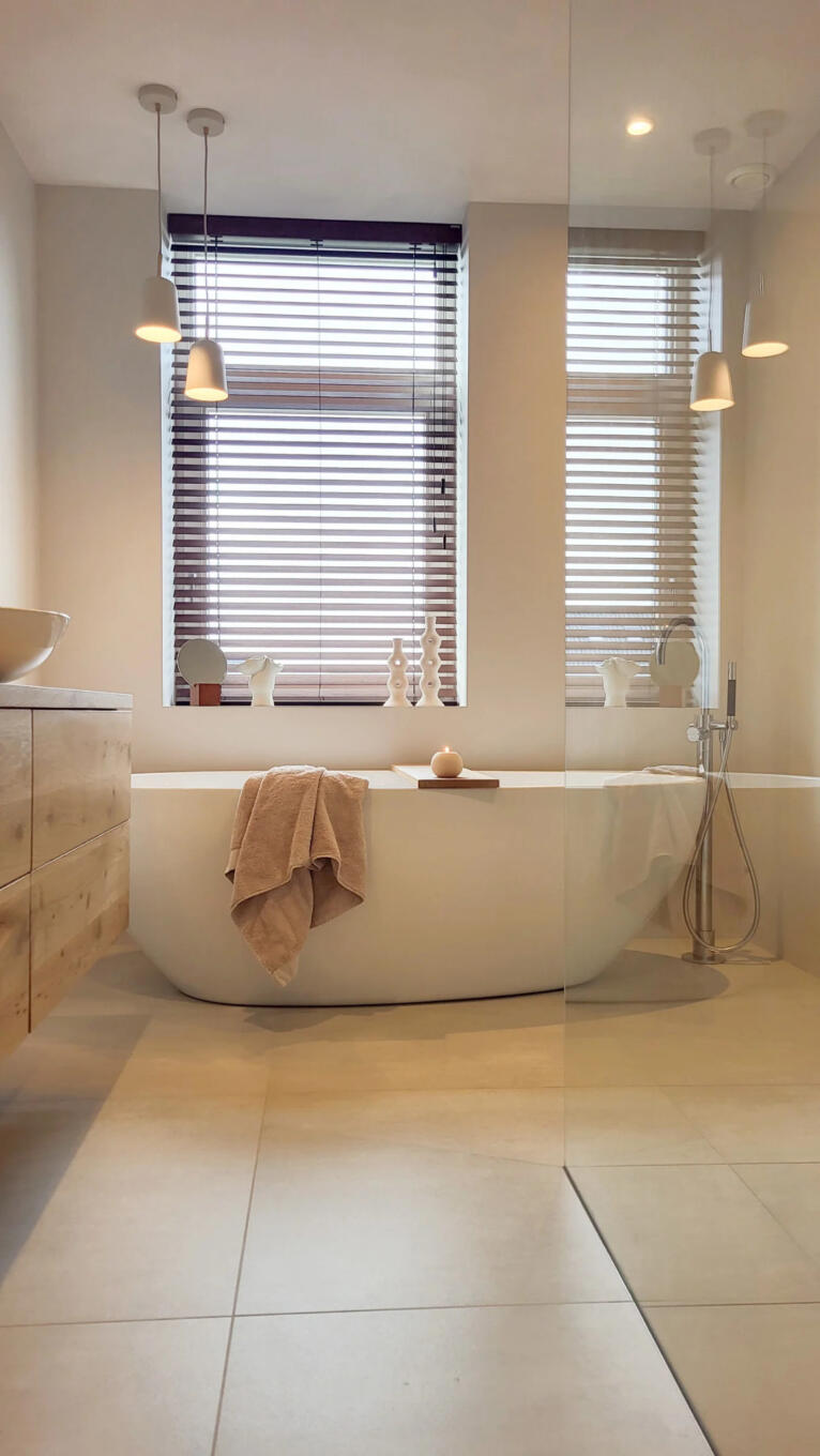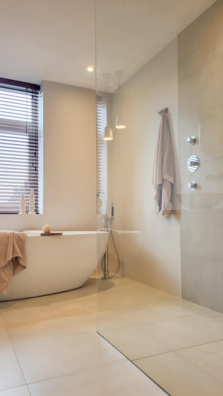 Een douchewand van nanocoating glas, ook wel timeless glas genoemd