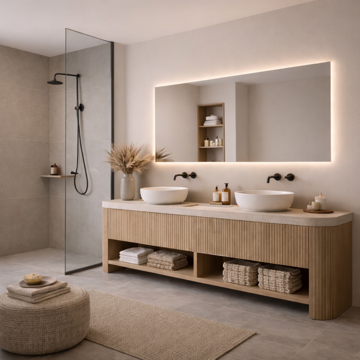 Deze functie is standaard inbegrepen en volledig geïntegreerd in het ontwerp. Je profiteert dus zonder meerprijs van extra comfort én gebruiksgemak. Tegelijk draagt het bij aan een luxe uitstraling van de badkamer.