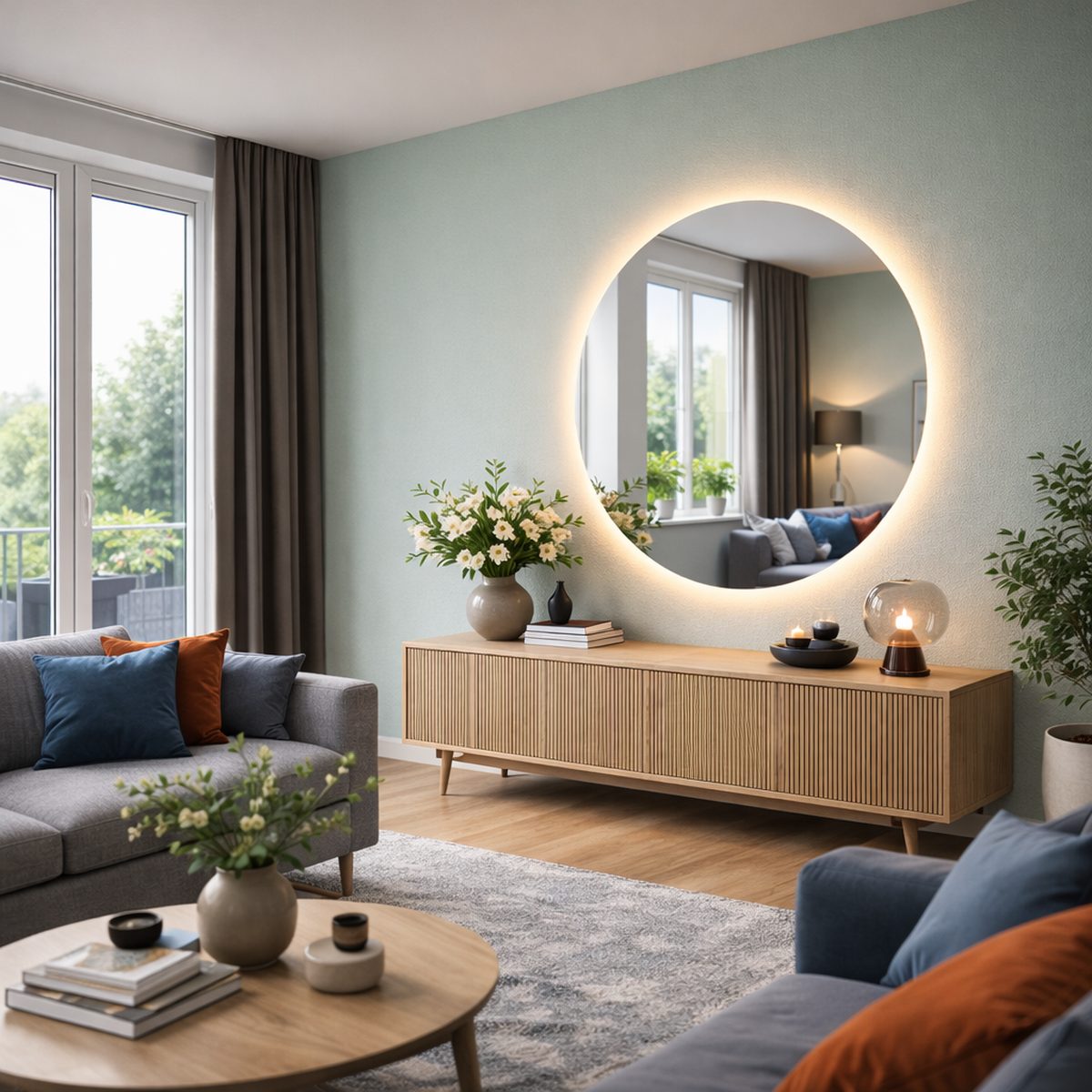 Je gebruikt een ronde spiegel eenvoudig in verschillende ruimtes. In de badkamer werkt hij functioneel, terwijl hij in een hal of slaapkamer vooral als blikvanger dient. Door de combinatie van vorm en verlichting voeg je altijd een stijlvol element toe.