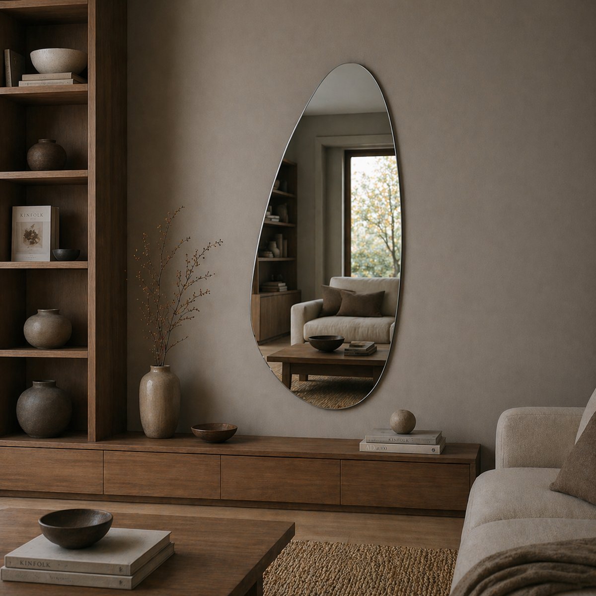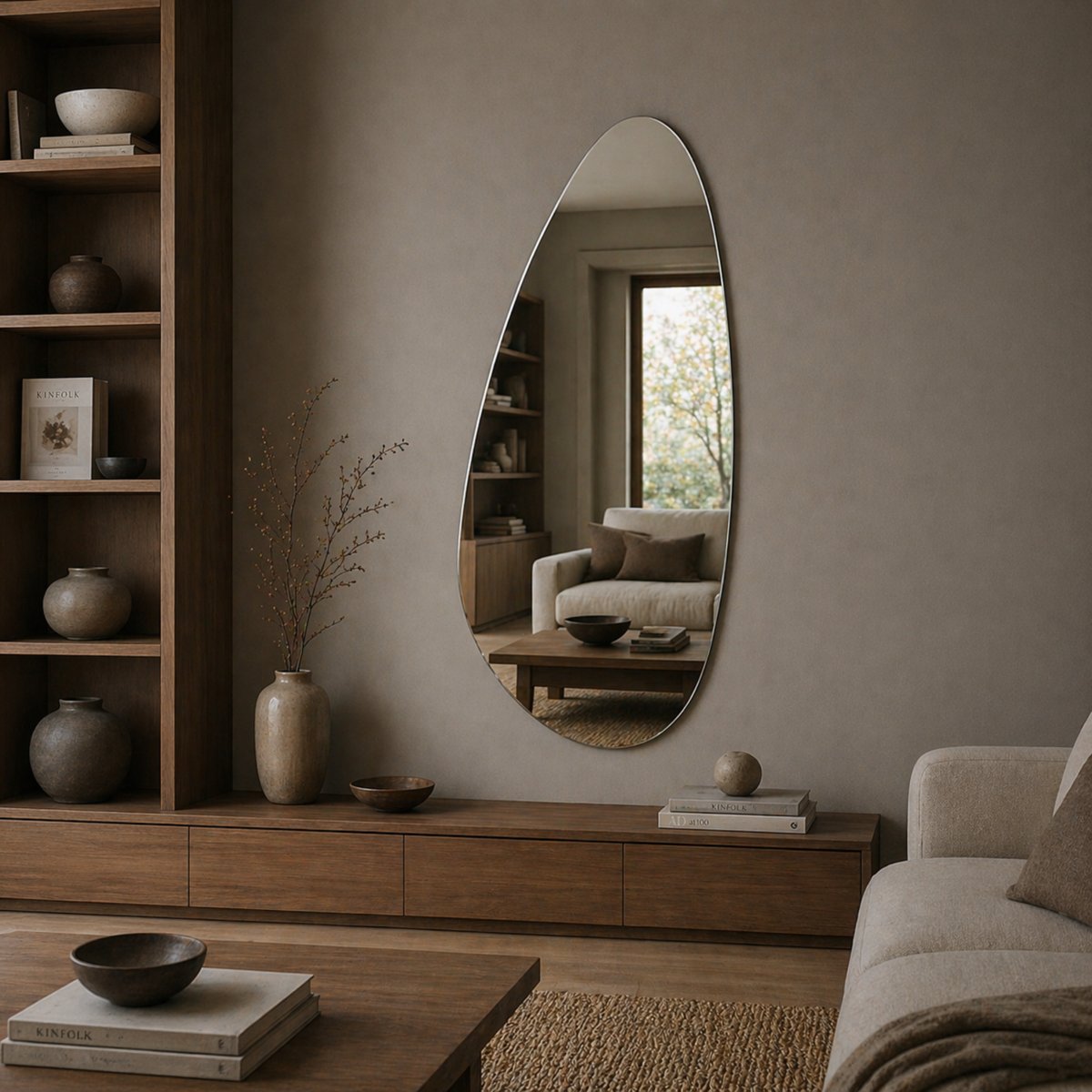 Door deze variatie is er altijd een uitvoering die past bij jouw stijl. Of je nu een warme sfeer wilt creëren of juist een frisse, moderne uitstraling zoekt, deze organische wandspiegel sluit naadloos aan.