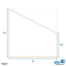 Model 10 – gehard glas driehoek rechts aflopend (vooraanzicht)